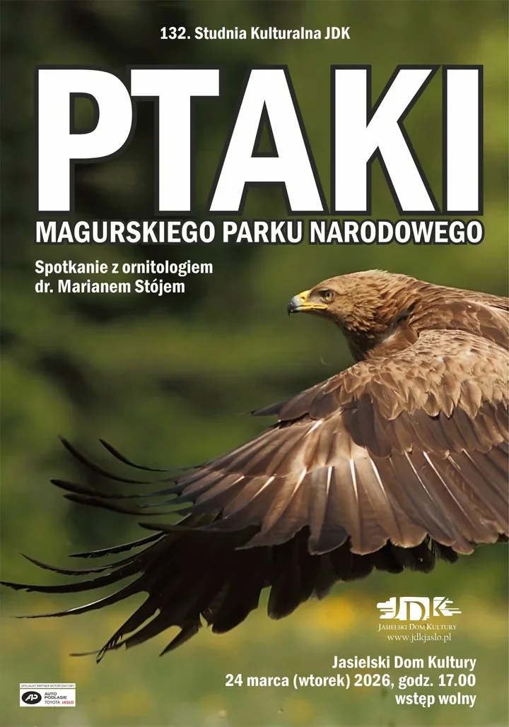 W sali multimedialnej spotkamy się z człowiekiem, który zna ptaki tego terenu jak mało kto i potrafi opowiadać o nich z humorem i rzetelnością. 24 marca 2026 (wtorek) o godz. 17.00 w sali multimedialnej zabrzmią opowieści o siedliskach, zwyczajach i ryzykach, które dziś stają przed skrzydlatymi mieszkańcami Magury. Wstęp wolny.