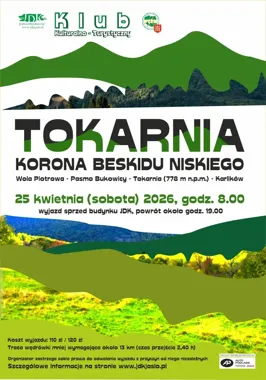 W Beskidzie Niskim są takie miejsca, które zamiast hałasu serwują przestrzeń, spokój i trochę historii pod stopami. Tokarnia, najwyższy punkt Pasma Bukowicy, będzie kolejnym celem wycieczki Klubu Kulturalno-Turystycznego Jasielskiego Domu Kultury i PTTK Oddział w Jaśle. 🥾🌲