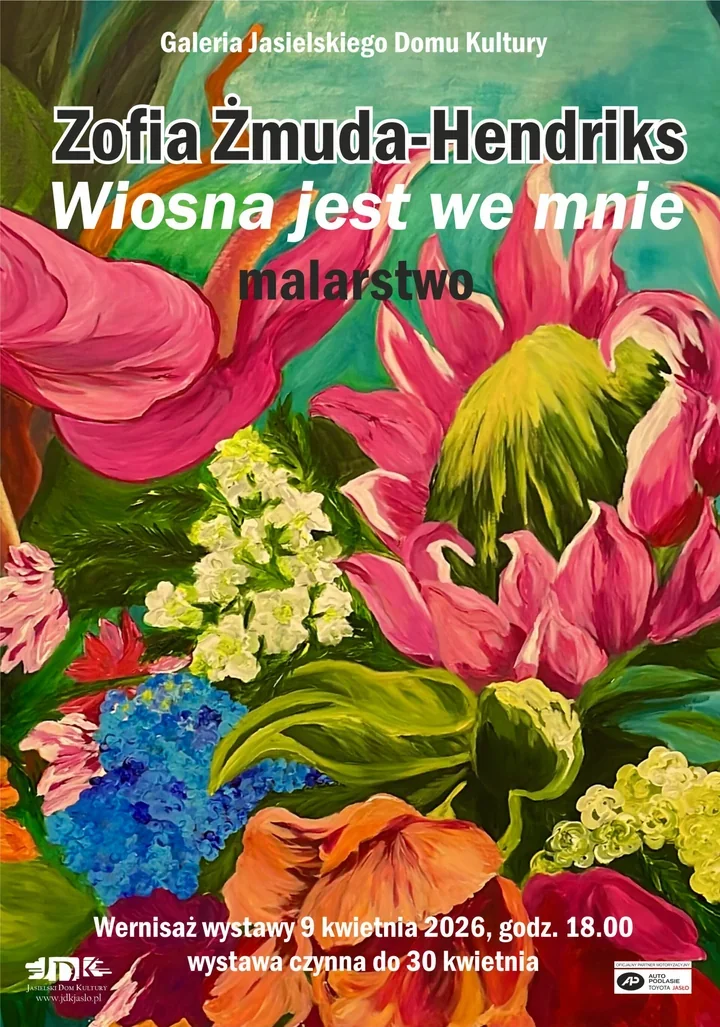 W Galerii Jasielskiego Domu Kultury szykuje się wystawa, która zamiast głośnych deklaracji stawia na kolor, ciszę i osobistą historię. 9 kwietnia o godz. 18.00 Zofia Żmuda-Hendriks otworzy ekspozycję „Wiosna jest we mnie”, a obrazy zostaną w Jaśle do 30 kwietnia. 🌷