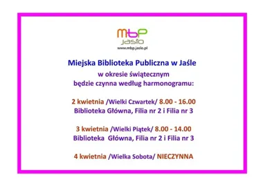 Wielkanocny rytm w Jaśle - biblioteka zmienia godziny przed świętami
